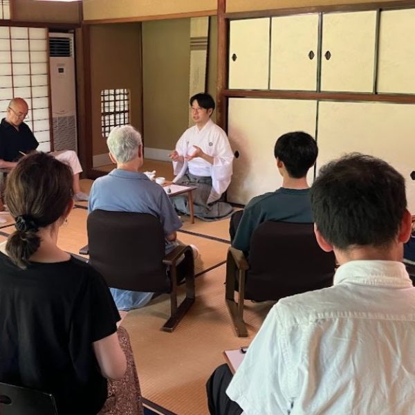 山縣有朋によって明治に建造されたままのお庭の見えるお部屋で、季節に沿ったお能の謡を解説後、イントネーションの説明を受けながら宇髙竜成さんとともに謡を詠んでいきます。また、別の謡の実演を交え、ご来場の皆様とコミュニケーションをとりながら過ごすサロン形式のイベントです。