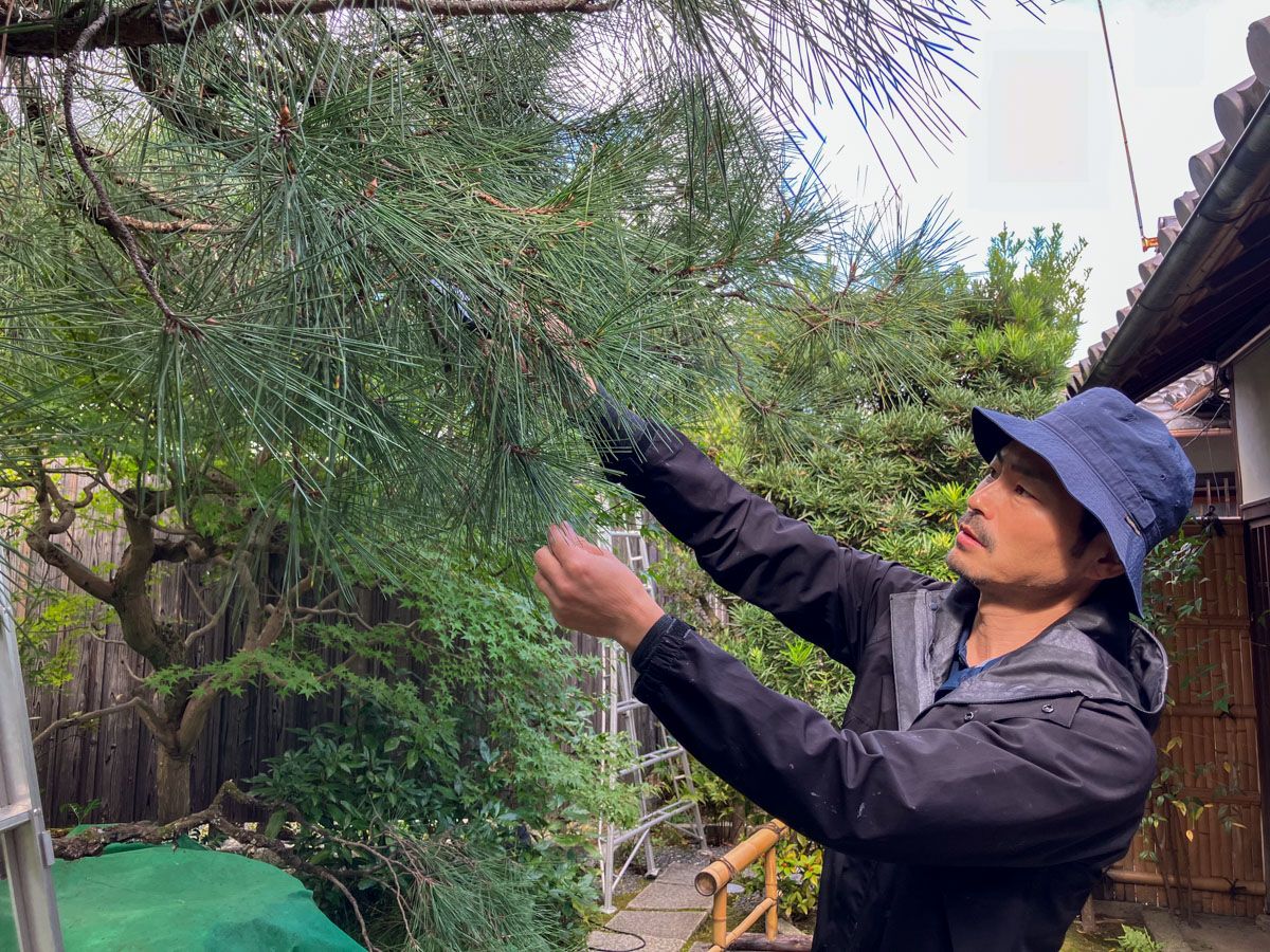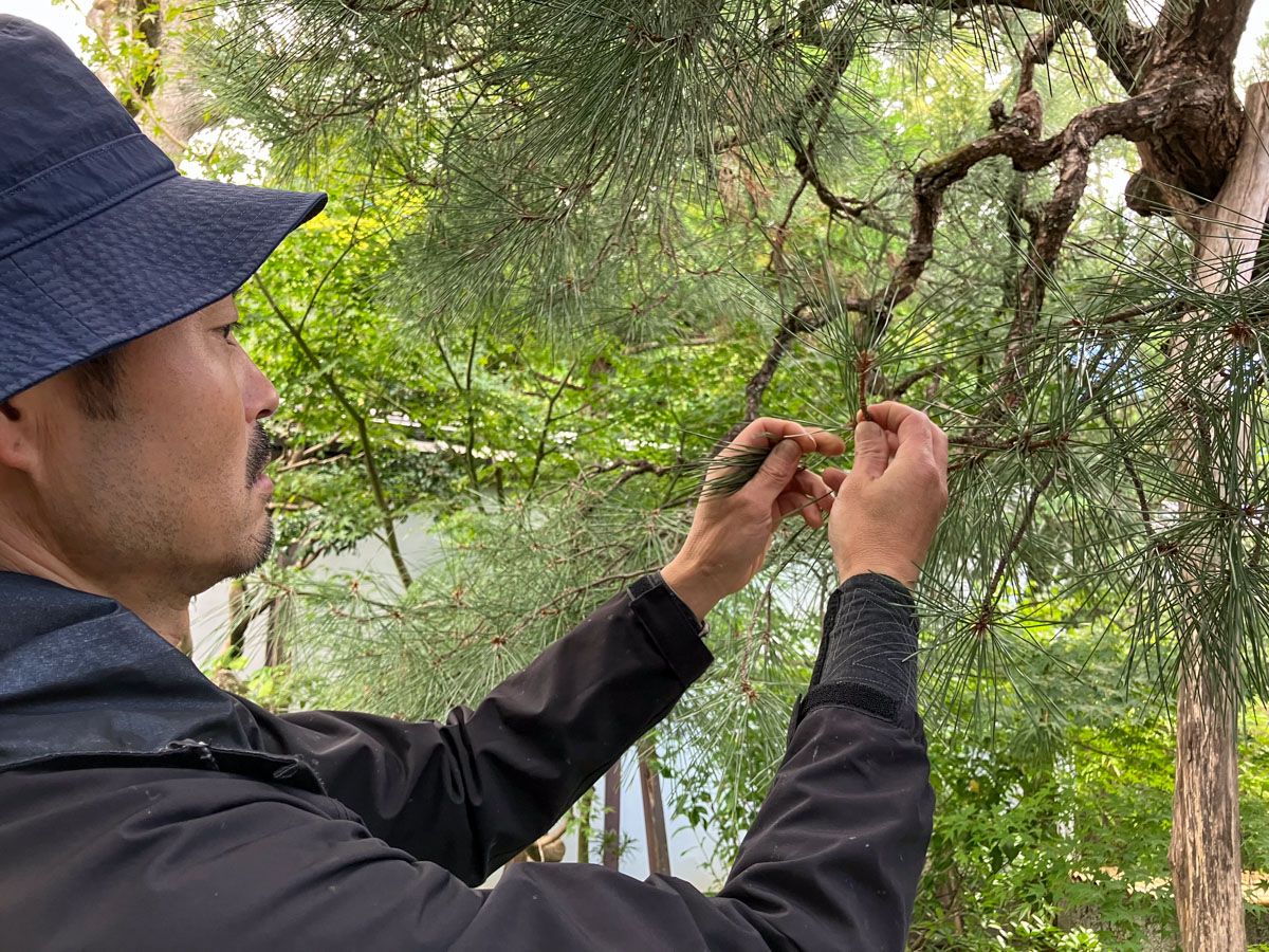 「葉むしり」とは、松の古葉を手でむしって落とし、すっきりとした姿に整える作業です。