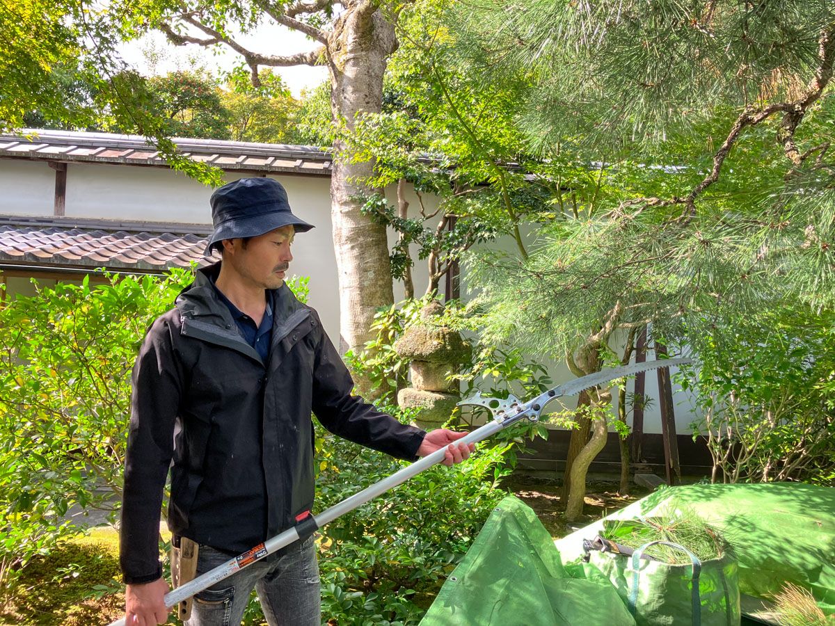 作業をする職人の足元に目をやると、古葉にまじって枝が落ちており、時折、ぱちん、ぱちんという剪定鋏の音も聞こえていました。