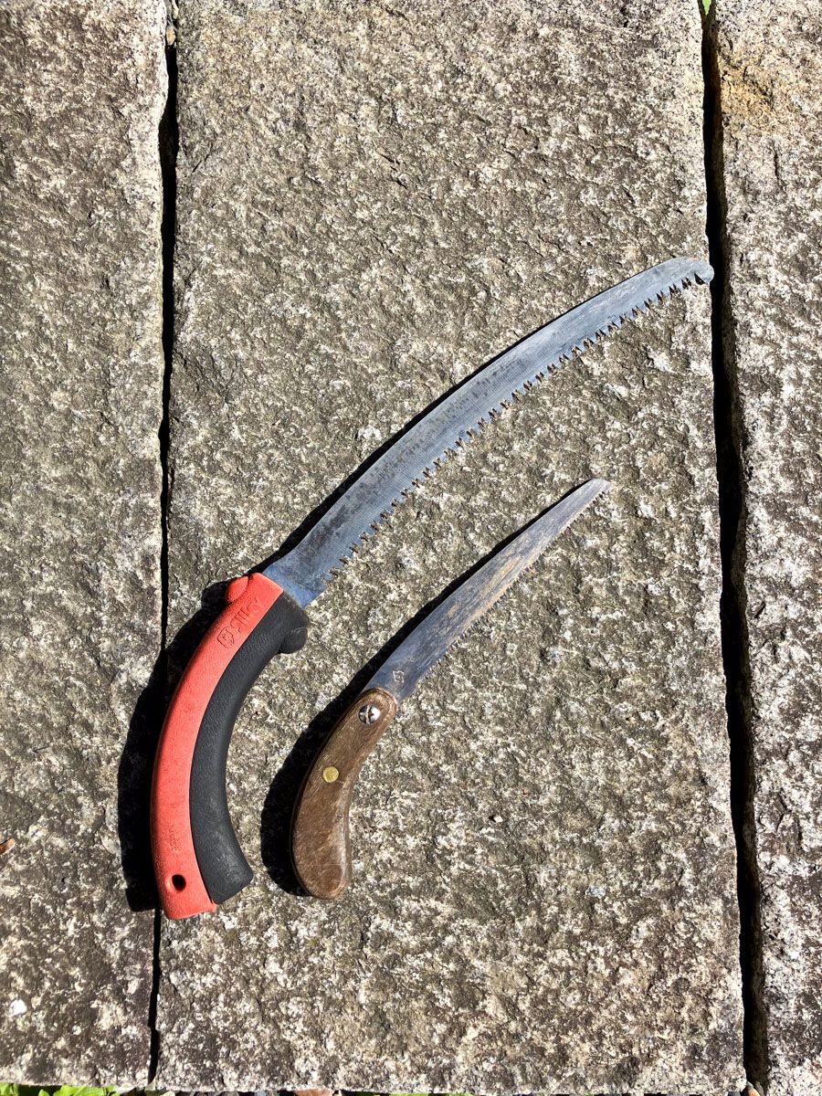 - 手ノコですね。もっと太い枝になってくると使いますよ。